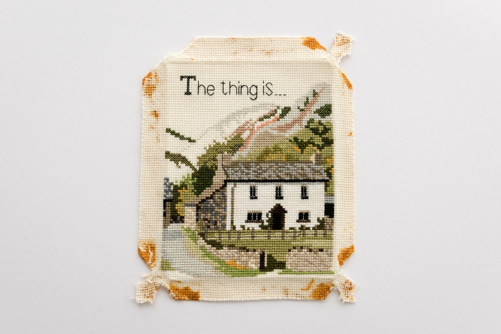 My practice uses fabric and thread to tell stories and my aim in working with Whitby Museum was to interpret their collections in a different way. Each piece from the exhibition tells a story about my life, using pieces from the museum’s archive as a reference point.