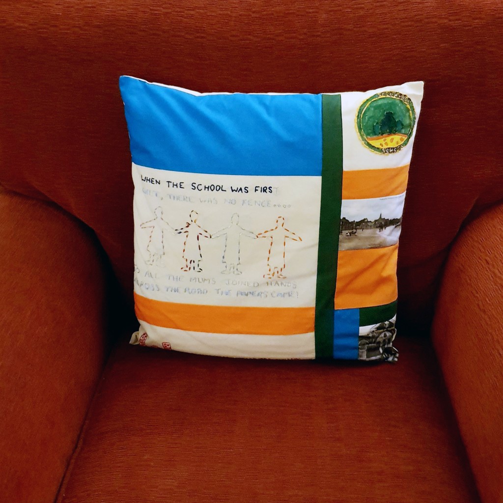 Working alongside local schools and community groups in Seacroft, we created a series of embroideries inspired by the Seacroft Scroll. The scroll was created by the community in 2018 and tells the history of Seacroft from the Ice Age visitors of 8000 BCE to the future plans imagined by participants.