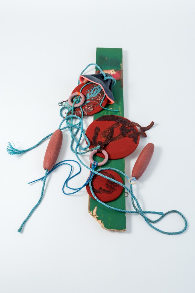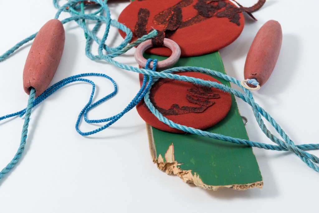 This starting point led me to explore different techniques using found and hand made ropes and knots. Using fishing net weights and handmade metal findings to create linked pieces of work featuring embroidered ropes and chains.